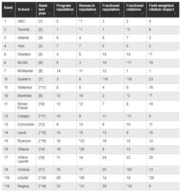 本校加拿大排名:QS加拿大大学排名2020年第1名