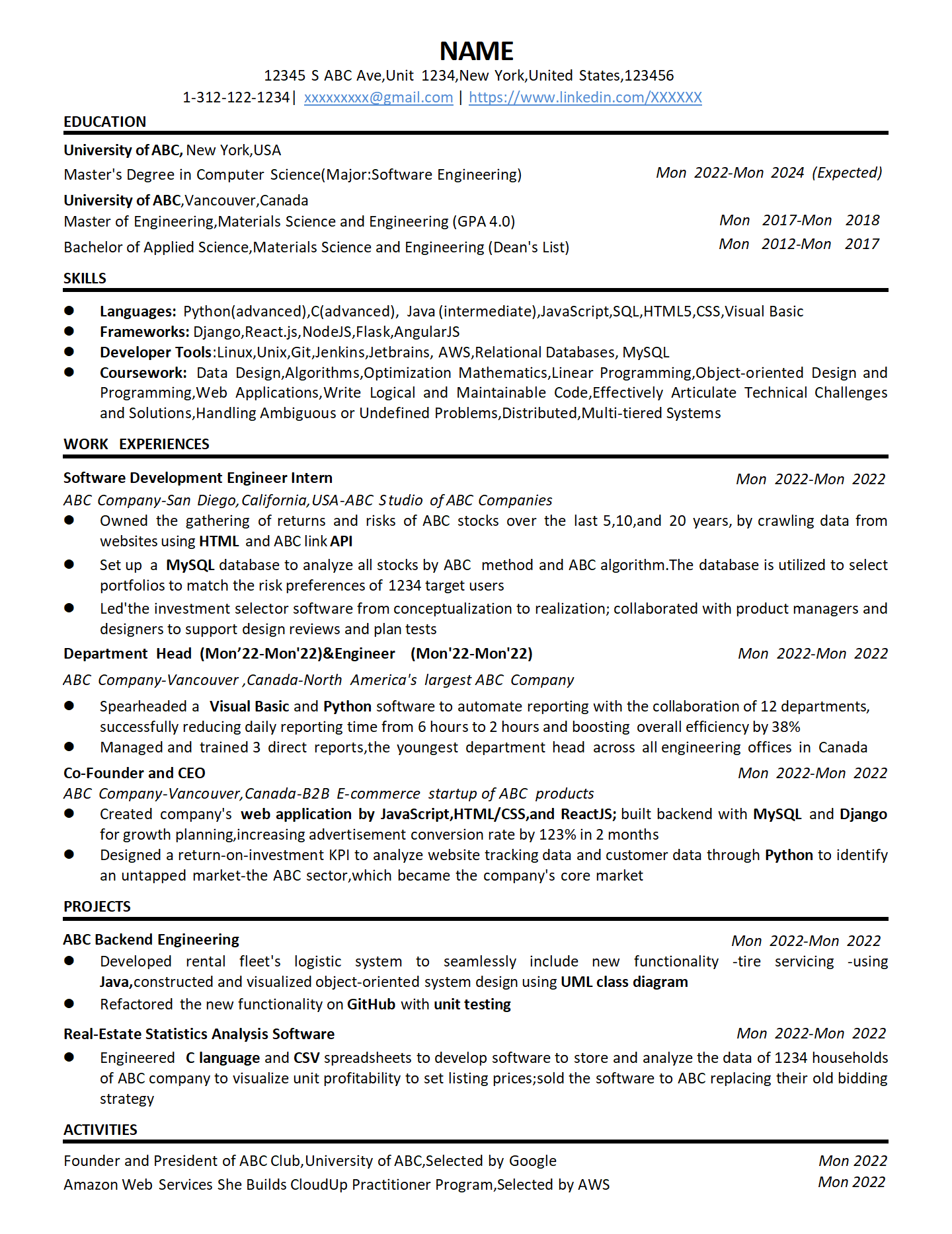 案例:滑铁卢大学学生 Lily,在简历中加入 “参与多伦多公益组织‘Code for Canada’,用 Python 优化社区资源分配系统”,最终获某科技公司录取。