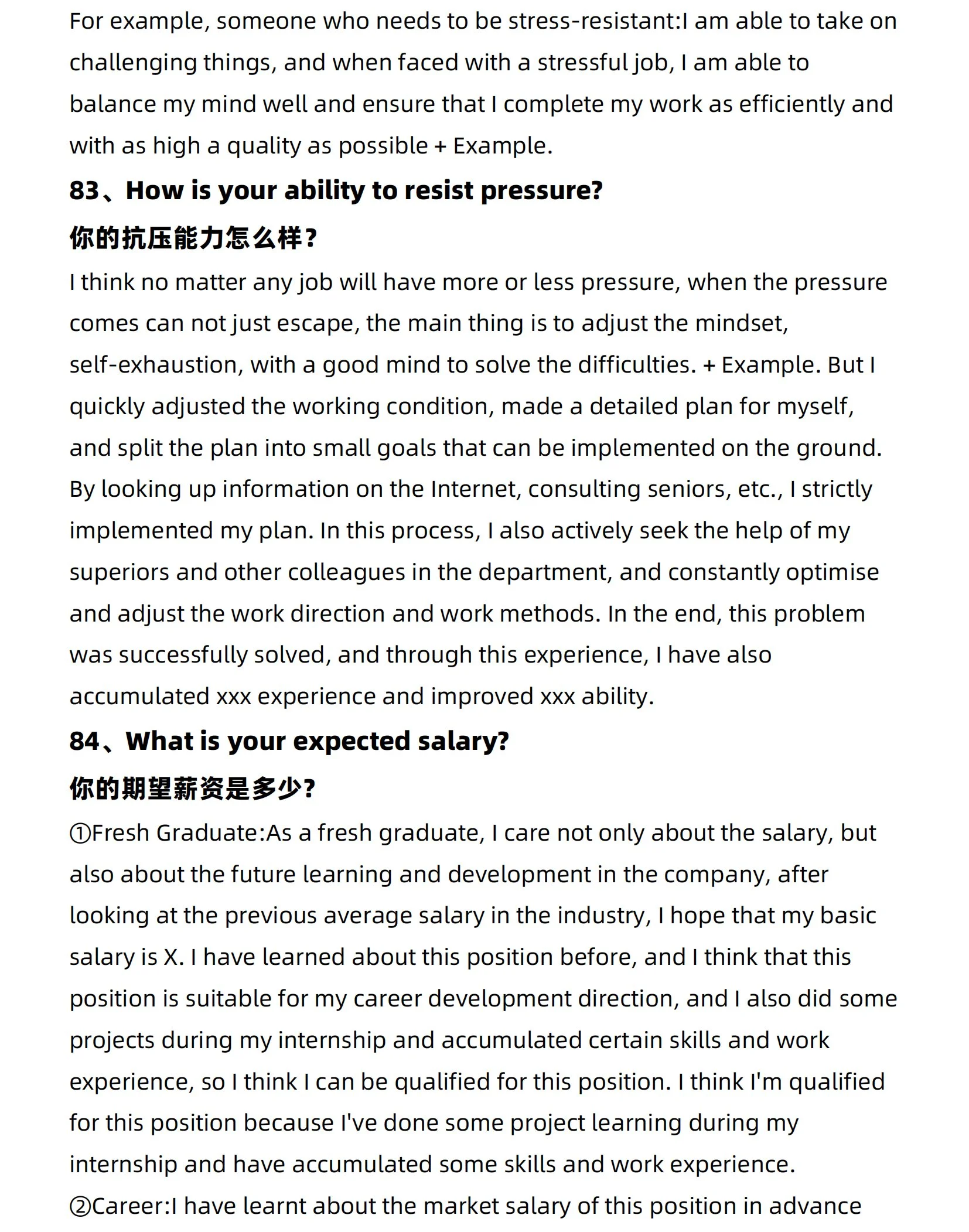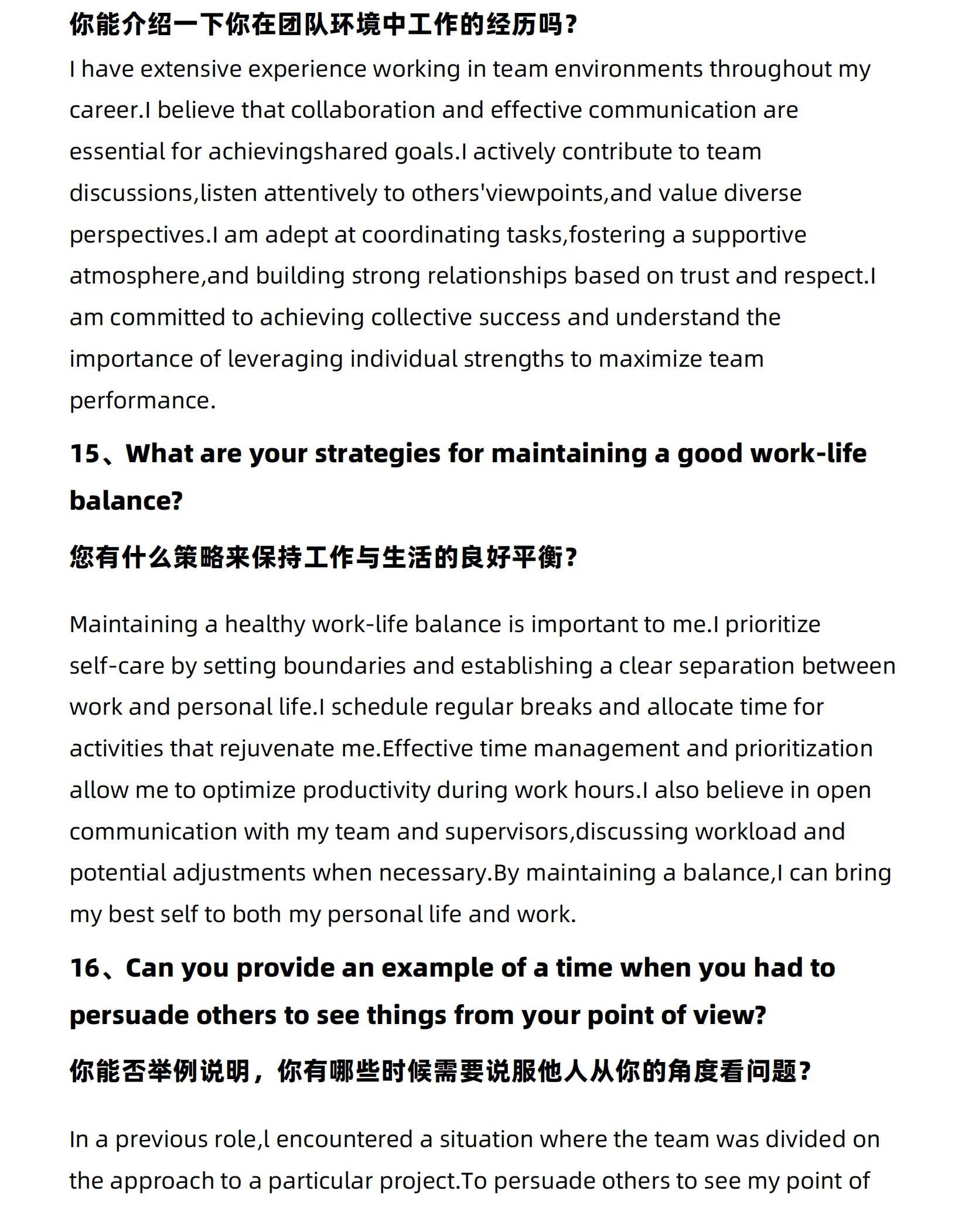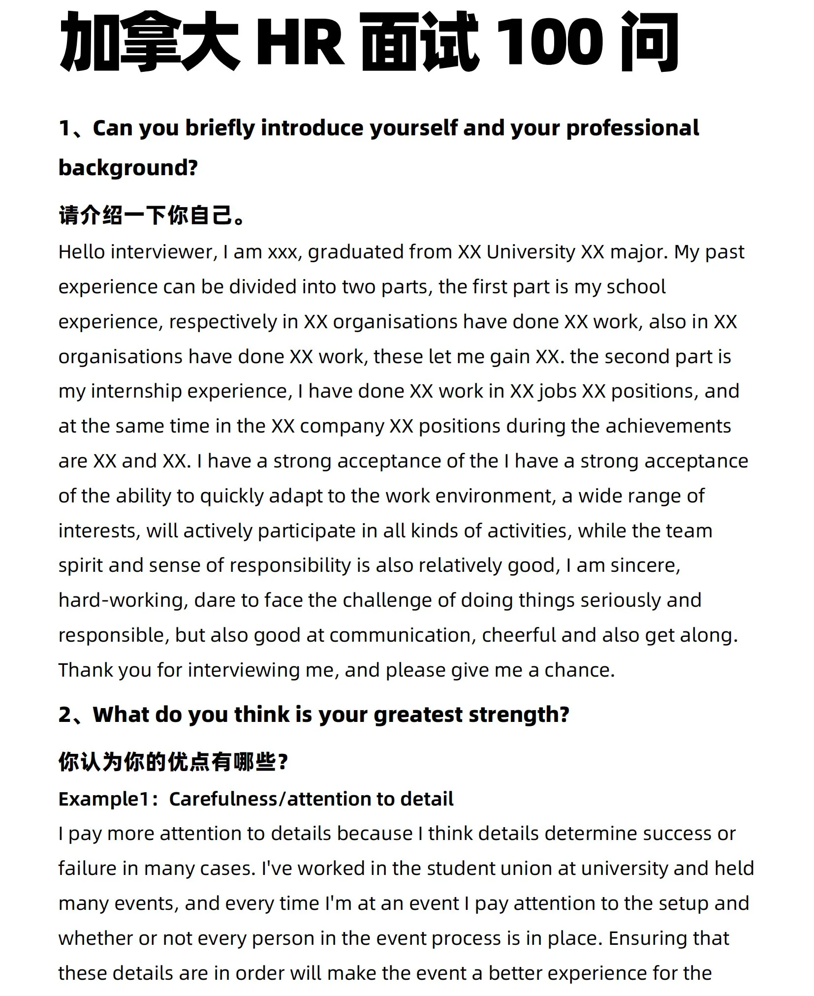 很多结构化问题都是可预见的,建议你看完下面的《加拿大HR100问》再去面试,一定会有意想不到的效果~