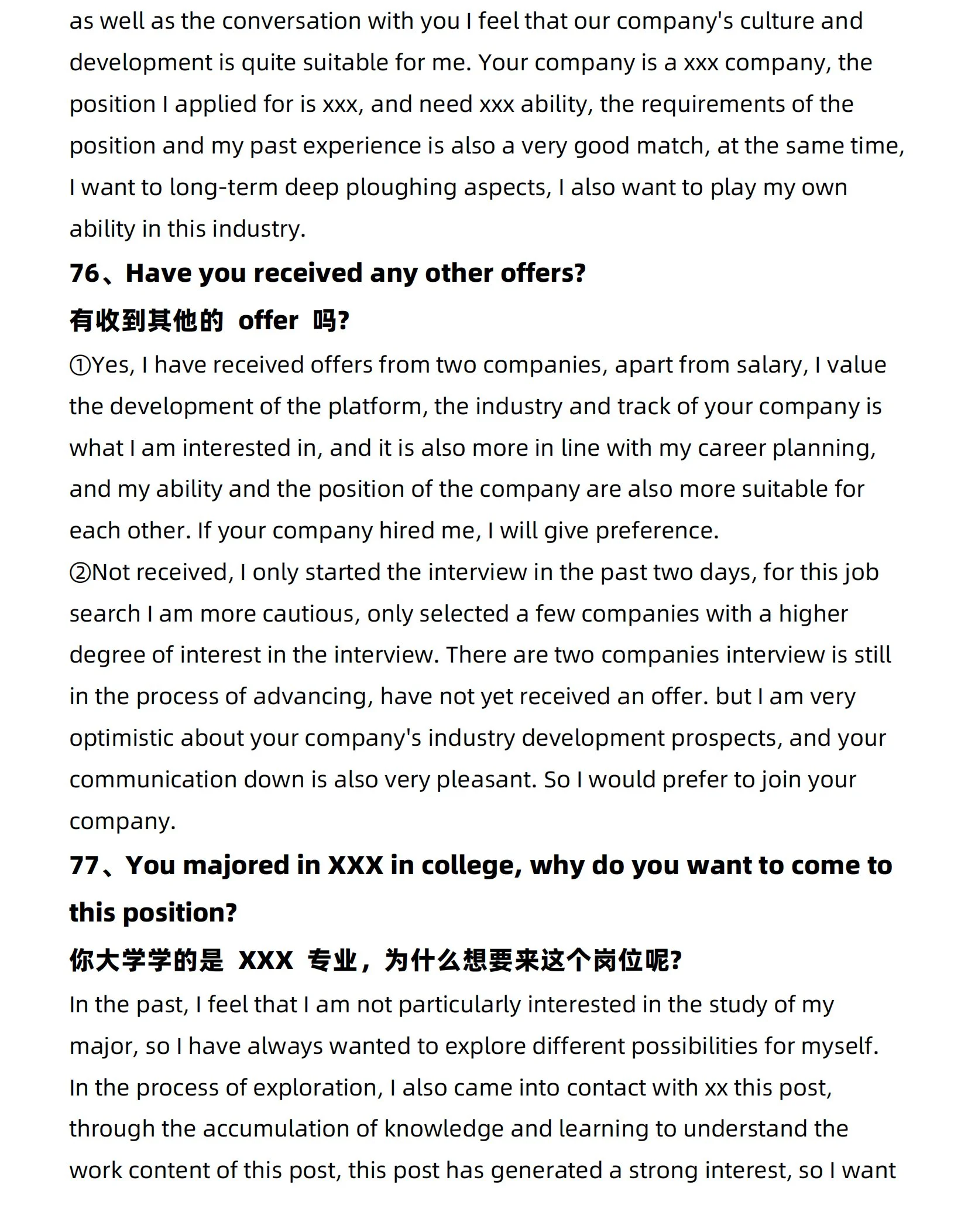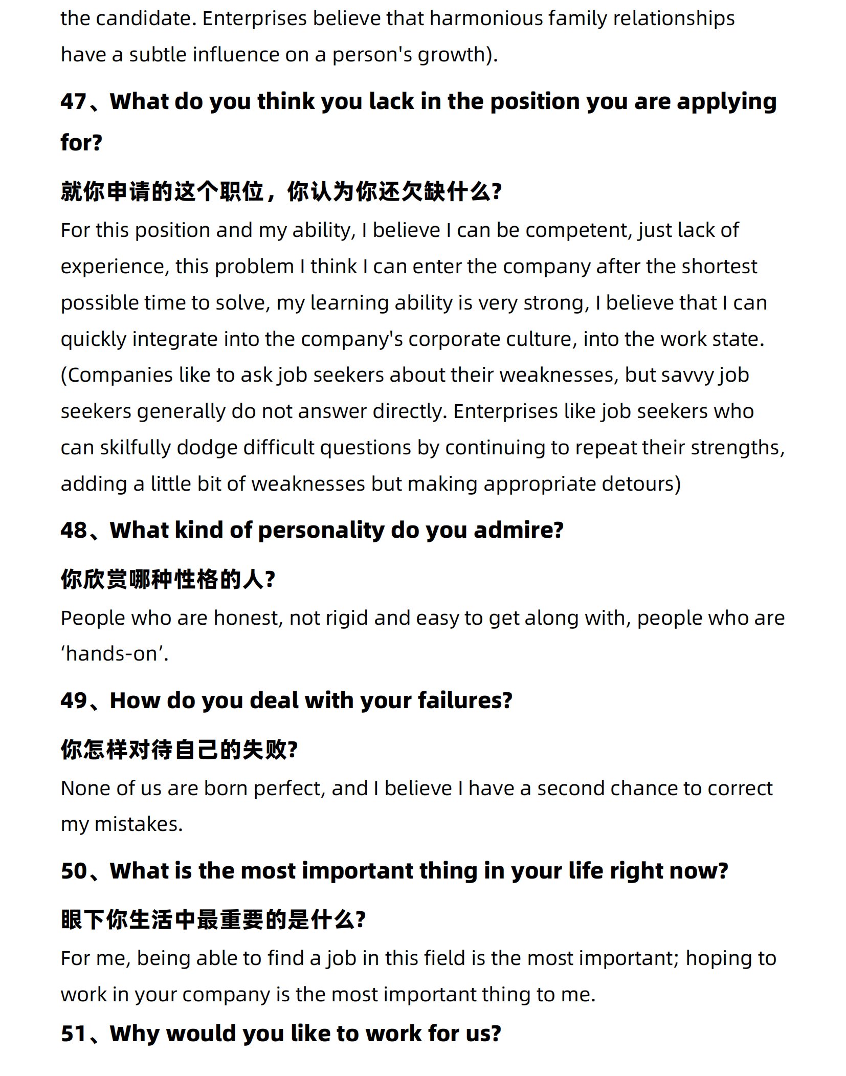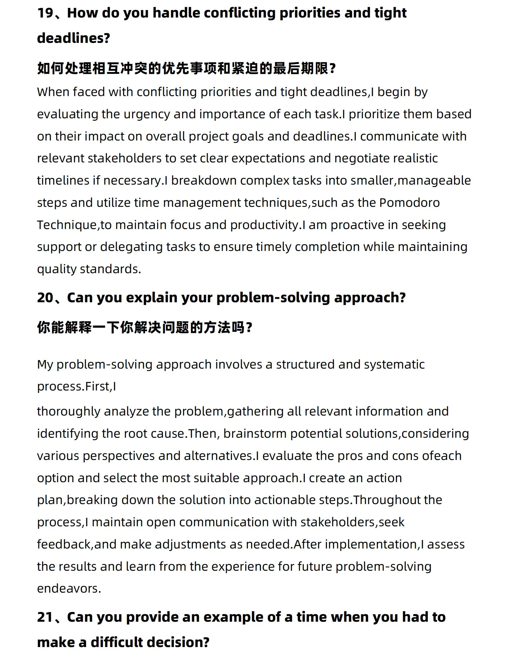 很多结构化问题都是可预见的,建议你看完下面的《加拿大HR100问》再去面试,一定会有意想不到的效果~